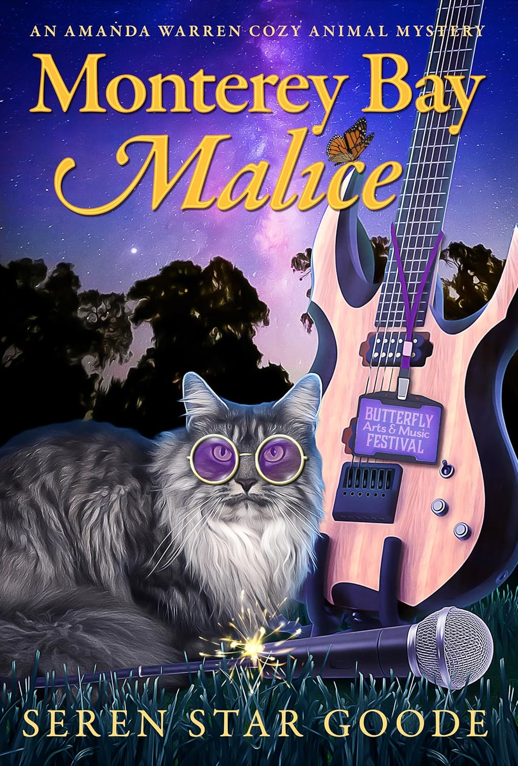 Monterey Bay Malice, the latest installment in the Amanda Warren Cozy Animal Mystery Series, strikes a deadly note when a music festival organizer is electrocuted onstage. As sabotage ripples through the seaside town of Ocean Wood, Amanda and Grok—her 35-pound psychic Maine Coon cat—must uncover the truth before celebration turns to catastrophe